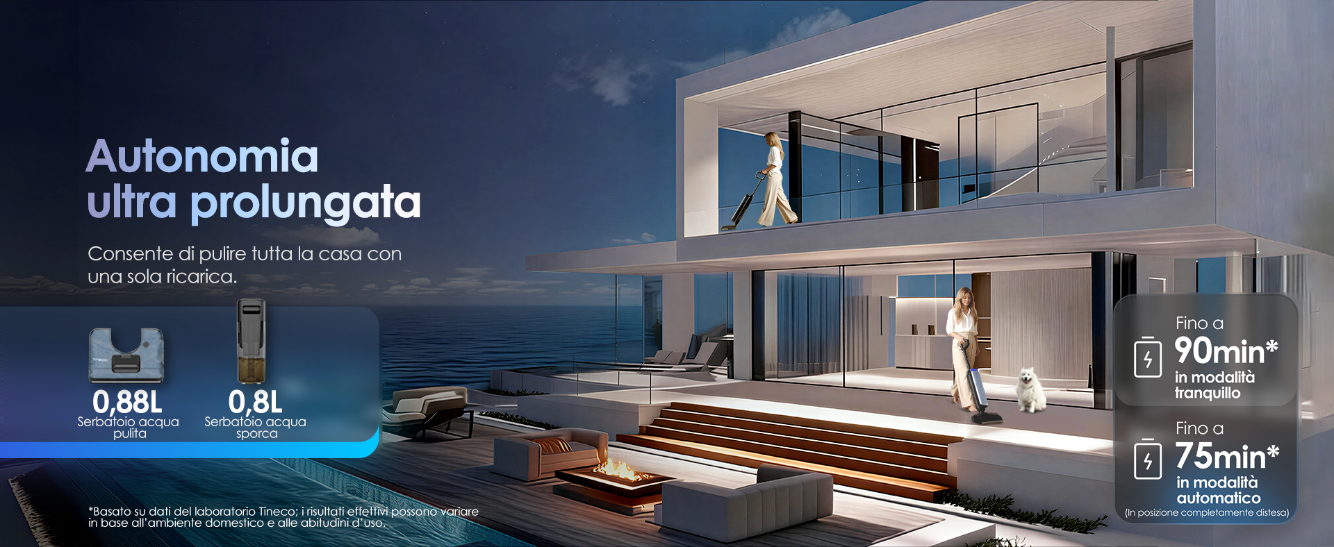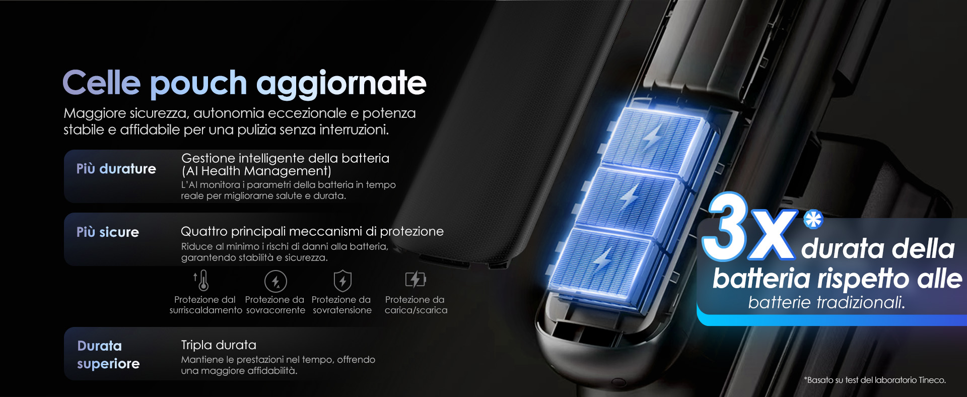 • Autonomia ultra prolungata – aspirapolvere senza fili con batterie agli ioni